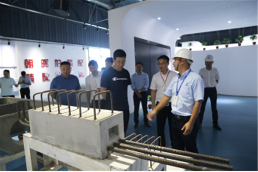 冒着38°高温酷暑,调研组一行顶着烈日先后参观了今年会com装配式展示厅、生产车间、实验室、构件堆场,今年会com金年会app重工模具工厂、钢结构工厂以及轻钢别墅、装配式样板房(实训楼)、培训教室等地方。通过专业讲解、一线走访,调研组直观了解了今年会com公司的发展历程、经营业务、企业管理以及今年会com装配式建筑设计研发、生产制造、运输安装、运维管理全链产业发展模式,并对今年会com装配式建筑产业的发展表示高度赞扬。