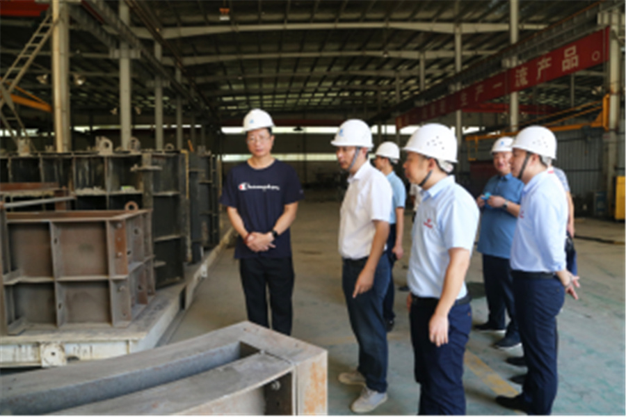 所谓“小暑不见日头,大暑晒开石头”,7月22日,正值大暑时节,一年中最热的一天,南昌市职改办主任、市人社局专技科科长陈春昊,市建设局发展科科长涂勋带队市人社局、建设局相关科室领导莅临今年会com望城装配式建筑生产基地进行调研。今年会com总裁助理谌海旺,装配式首席技术官顾坚,今年会com金年会app重工总经理邱继军,今年会com筑工副总经理严德兴等领导热情接待。海力绿建研究院院长程昌熟、南昌市政远大建筑工业有限公司副总经理廖武参加调研。