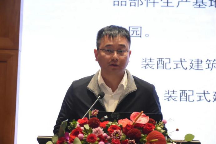 江西省住房和城乡建设厅二级调研员向恭水在会上发表致辞,他表示建筑业是我省重要的传统产业、支柱产业,对促进全省经济增长和改善民生发挥重要的促进作用,并表示南昌县是展示江西建筑业形象的重要窗口,而江西武阳装配式建筑产业园更是被住建部认定为国家装配式建筑产业基地(园区类),是我省起步最早、规模最大、成效最为显著的园区,为我省装配式建筑发展树立了标杆。