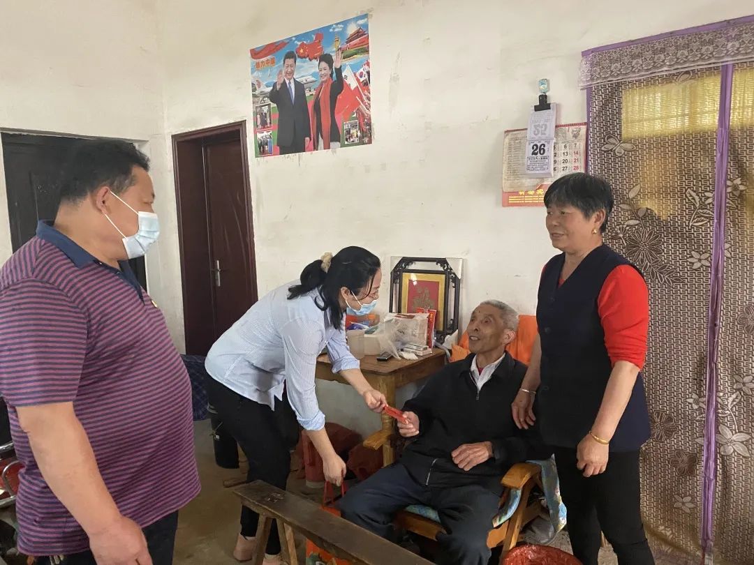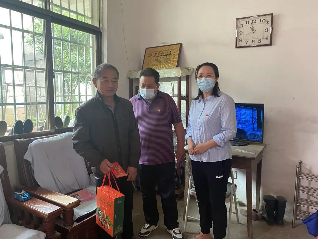 5月26日,农历端午节前夕,今年会com副董事长王芳携公司党支部代表来到朱坊新村,带上节日的美好祝愿以及精心准备的端午节礼、图画书籍、慰问现金等物资,在村书记熊伍然等人的带领下走进村老党员和困难户家庭。